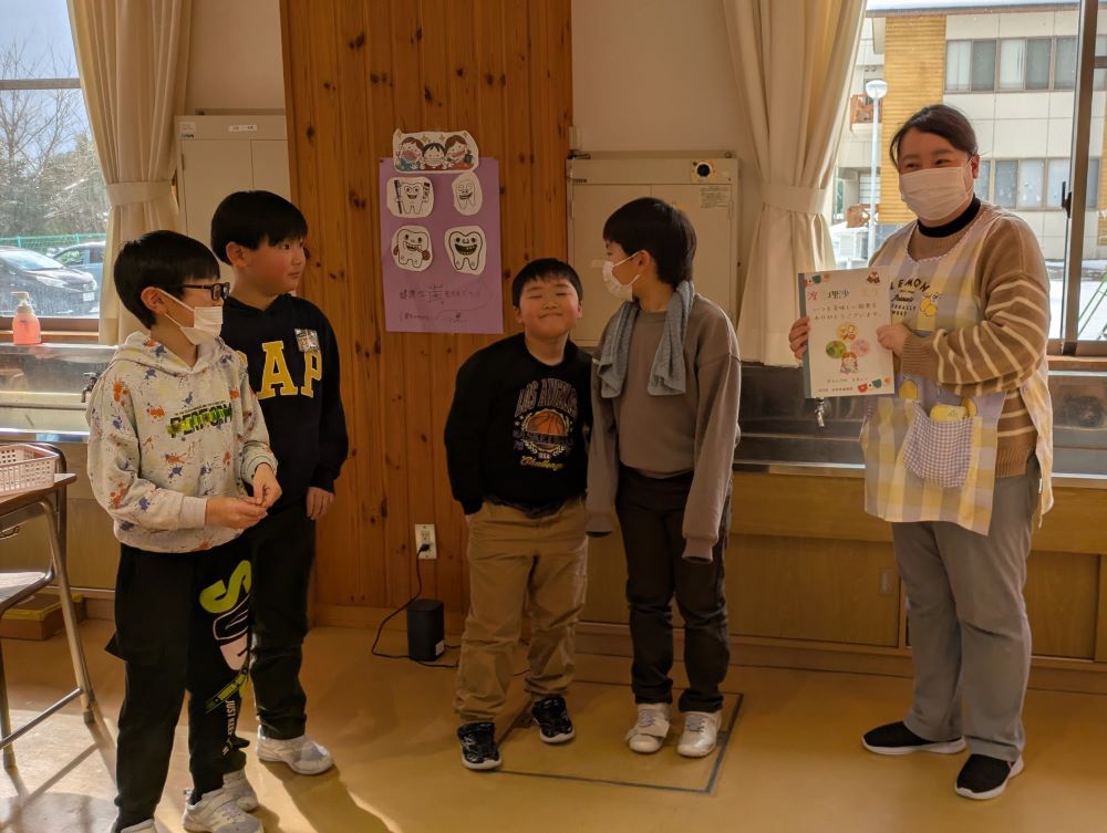 児童会の健康委員会が企画運営し、渡邉先生から栄養指導をいただいたり、児童代表が感謝の言葉を述べたり、感謝状を贈ったりしました。