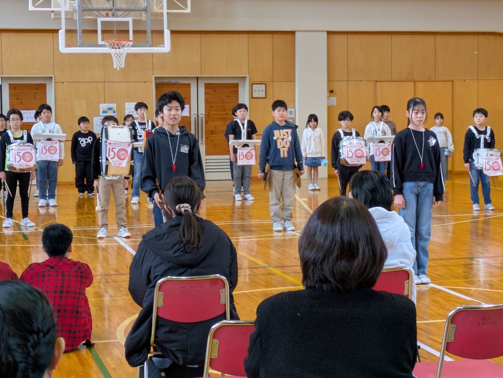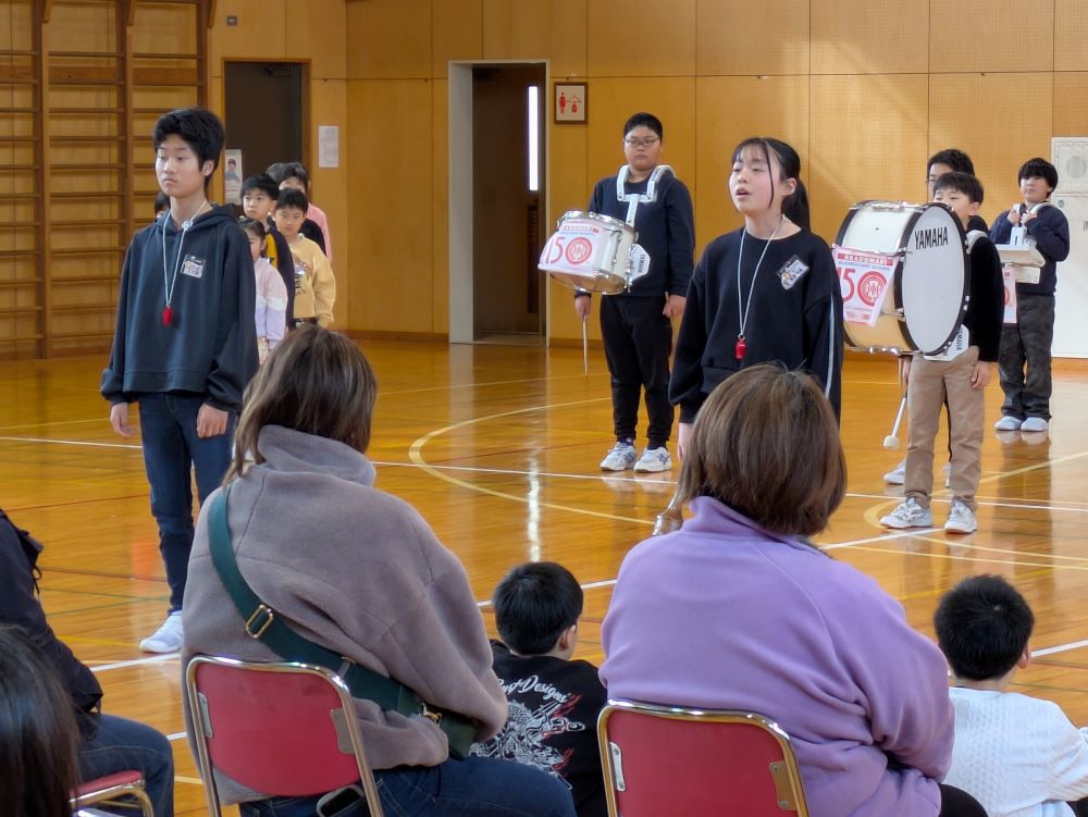赤泊小学校伝統と誇りのマーチングバンドの引継式を行いました。
