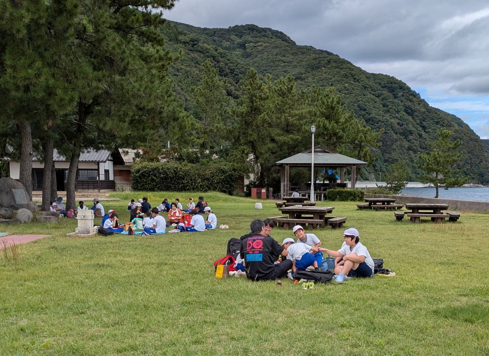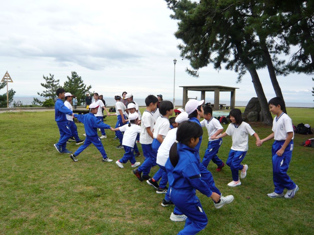 松ヶ崎ヒストリーパークでお弁当を食べ、縦割り班で様々な遊びをしました。